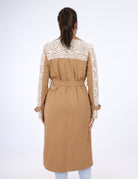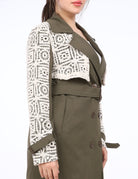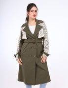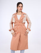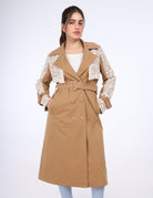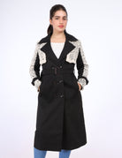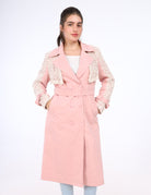 Elegance trench coat featuring delicate white lace details on the shoulders and sleeves.