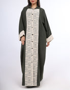 Elegant dress with a delicate lace front panel and a flattering silhouette,