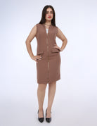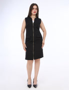 Chic sleeveless mini dress with a convenient front zip closure. Flattering fit, perfect for casual outings or evening events.