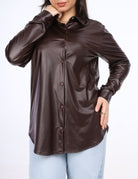 A sleek faux leather shirt that blends modern edge with timeless style.