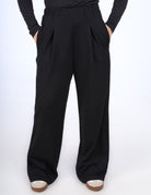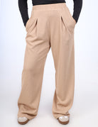 Soft corduroy wide-leg pants with elastic waist for a comfy, relaxed fit.