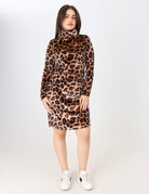 Elegant leopard print mini dress featuring a sleek turtleneck and long sleeves ,perfect and chic for everyday style.