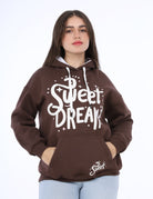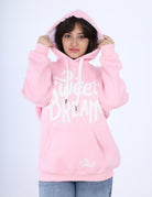 Cozy oversized hoodie with a cute “Sweet Dream” print, contrast drawstrings, and a front kangaroo pocket for a relaxed everyday look.