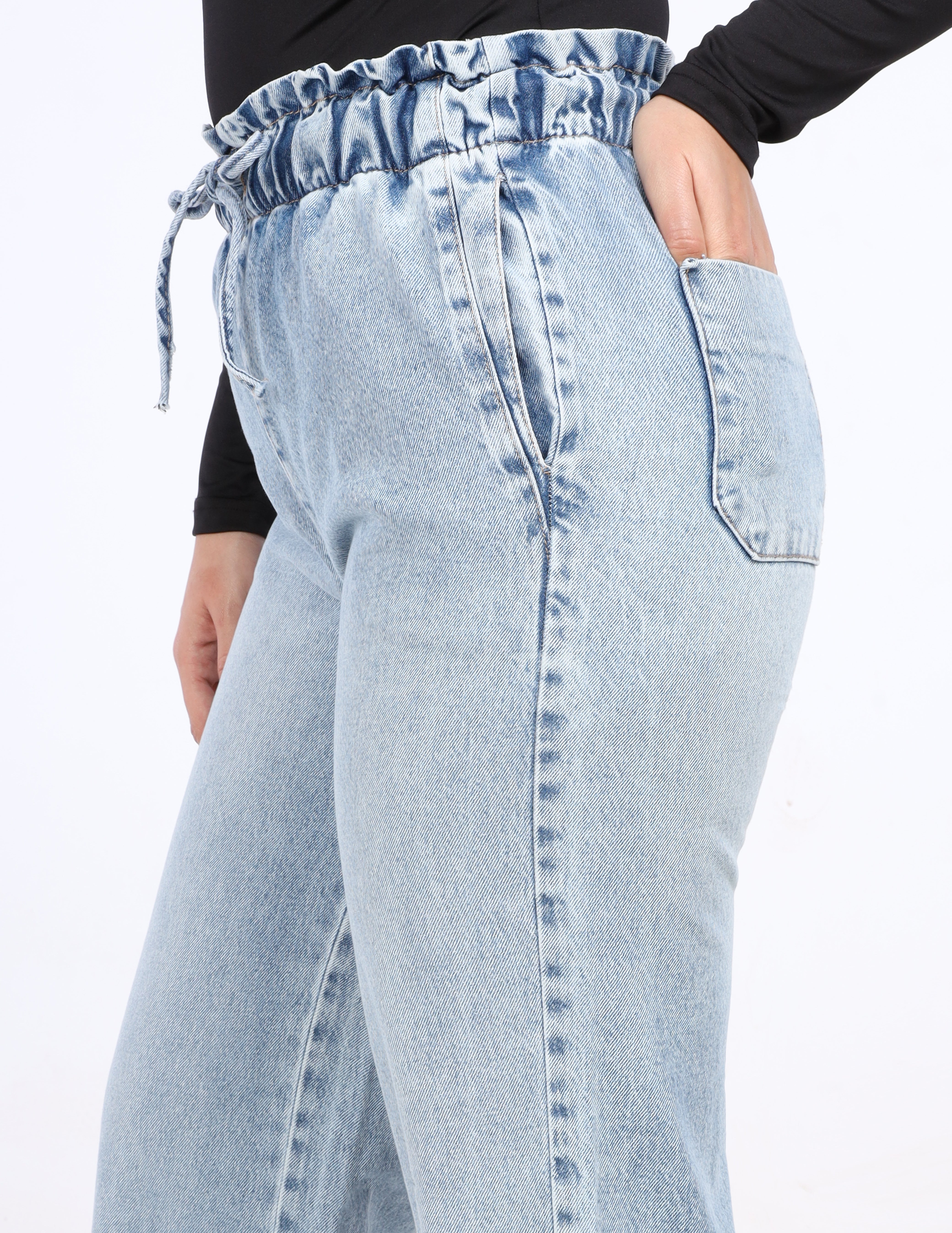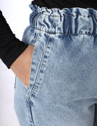 Comfortable denim pants featuring an elastic waistband for an easy fit