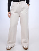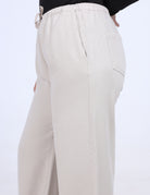 Beige Wide-leg gabardine pants with an elastic waistband for effortless comfort and style.