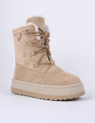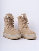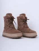 Soft and warm mid-calf boots featuring a suede look finish and a plush faux-fur lining, perfect for cozy winter style.